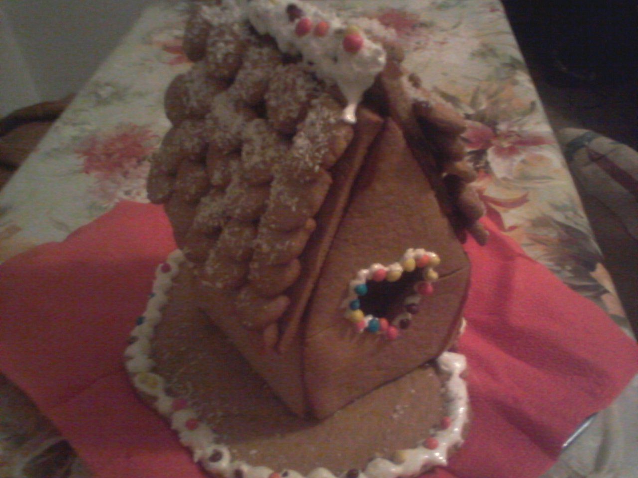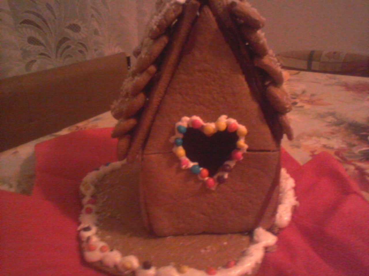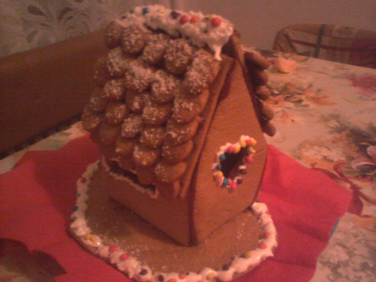Én most építettem egy házikót, de karácsonyfadíszeket szeretnék a héten készíteni. A házikó nagyon cuki lett, porcukrom viszont nem volt otthon, és tojásfehérje és kristálycukor keverékével díszítettem, ami nem lett az igazi, és cukorkám sem volt túl sok, szóval ez amolyan próba lakás:)